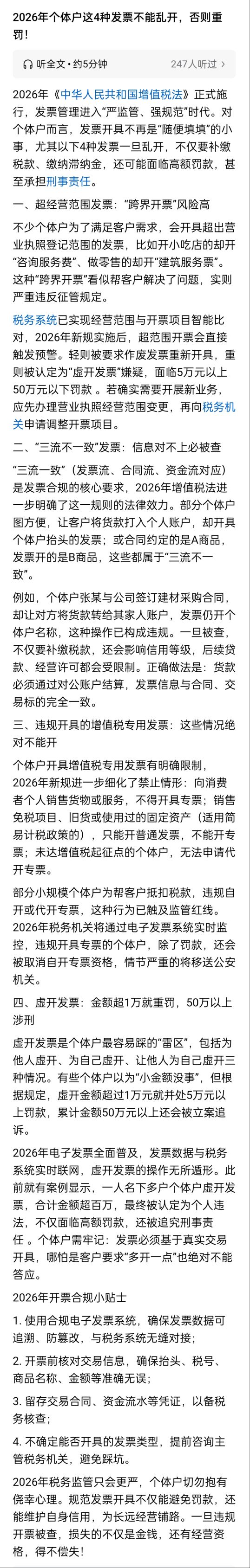 2026年个体户这4种发票不能乱开,否则重罚!